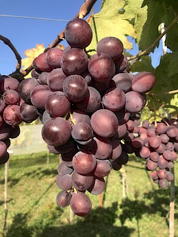 Stolní TOP velmi elegantní červená velmi raná super novinka s velmi velkým hroznem i bobulí výborné chuti s vysokou odolností mrazu a chorobám.