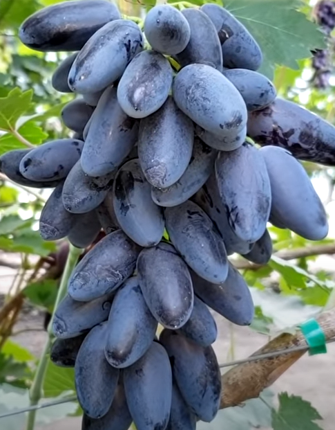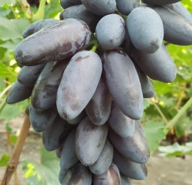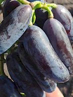 Stolní TOP velmi raná fialovomomodrá super novinka s velmi velkým hroznem a bobulí atraktivní palčikové formy s příjemnou chutí, s vysokou odolností mrazu a velmi vysokou odolností chorobám.