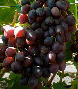 Stolní velmi atraktivní raná červenofialová super novinka s velmi velkým hroznem a bobulí výborné odrůdové chuti s vysokou odolností mrazu a chorobám.