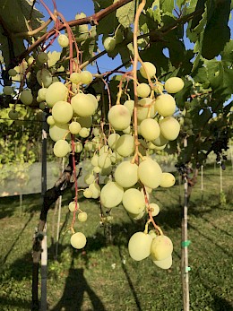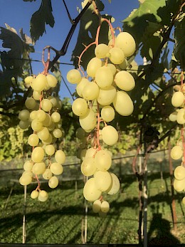 Stolní velmi atraktivní bílá raná super novinka s velmi velkým hroznem a bobulí výborné odrůdové chuti s vysokou odolností mrazu a chorobám.