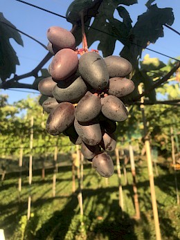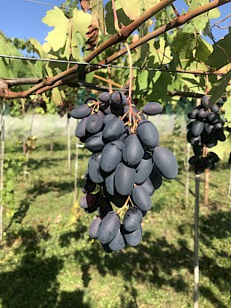 Stolní TOP velmi atraktivní modročerná velmi raná super novinka s velmi velkým hroznem a bobulí výborné harmonické chuti, s vysokou odolností mrazu a chorobám.