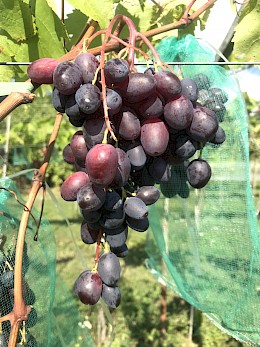 Stolní velmi atraktivní červenofialová velmi raná perspektivní novinka s velmi velkým hroznem a bobulí výborné harmonické chuti s vysokou odolností mrazu a chorobám.
