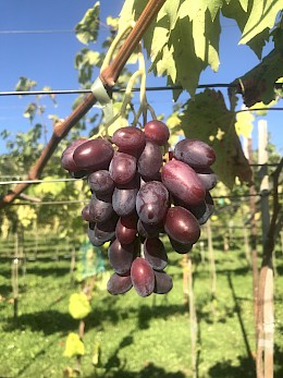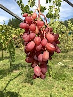 Stolní velmi raná velmi atraktivní červená novinka s velmi velkým hroznem a bobulí harmonické chuti s lehkým muškátem, výrazně palčikového tvaru, s vysokou odolností mrazu a chorobám.