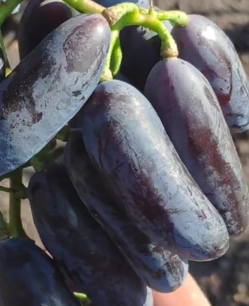 Stolní TOP velmi raná fialovomomodrá super novinka s velmi velkým hroznem a bobulí atraktivní palčikové formy s příjemnou chutí, s vysokou odolností mrazu a velmi vysokou odolností chorobám.