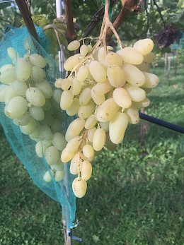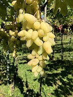 Stolní velmi raná žlutá novinka s velkými hrozny a velmi velkými atraktivními bobulemi s chutí muškátu, s vysokou úrodností, s vysokou odolností mrazu a chorobám.