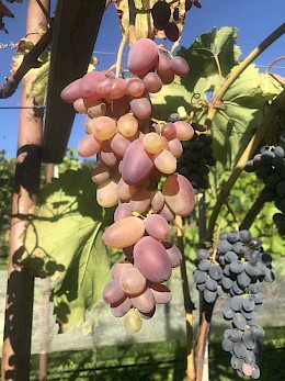 Stolní velice atraktivní růžová velmi raná super novinka s velkým hroznem a velmi velkou bobulí výborné harmonické chuti, s vysokou odolností mrazu a chorobám.